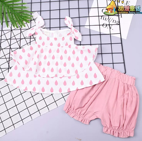 蓬蓬的小T恤,水滴型的印花,蝴蝶结的吊带,让人看起来十分清爽自然,搭配同色调阔腿短裤,小女神瞬间亮相啦!