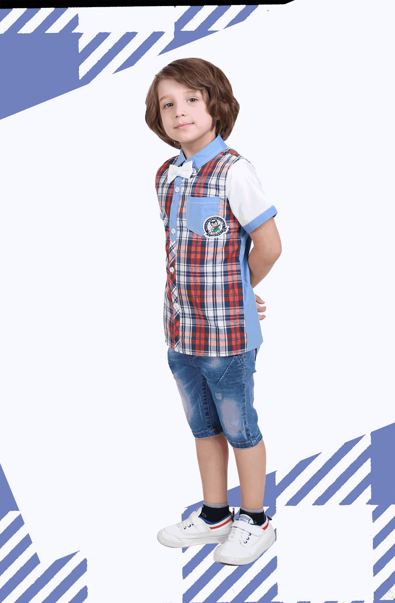 格子衬衫搭配短牛仔裤,配上小白鞋,走在街道上,干净清爽,颜值简直帅到爆,小帅哥的回头率保证不低!
