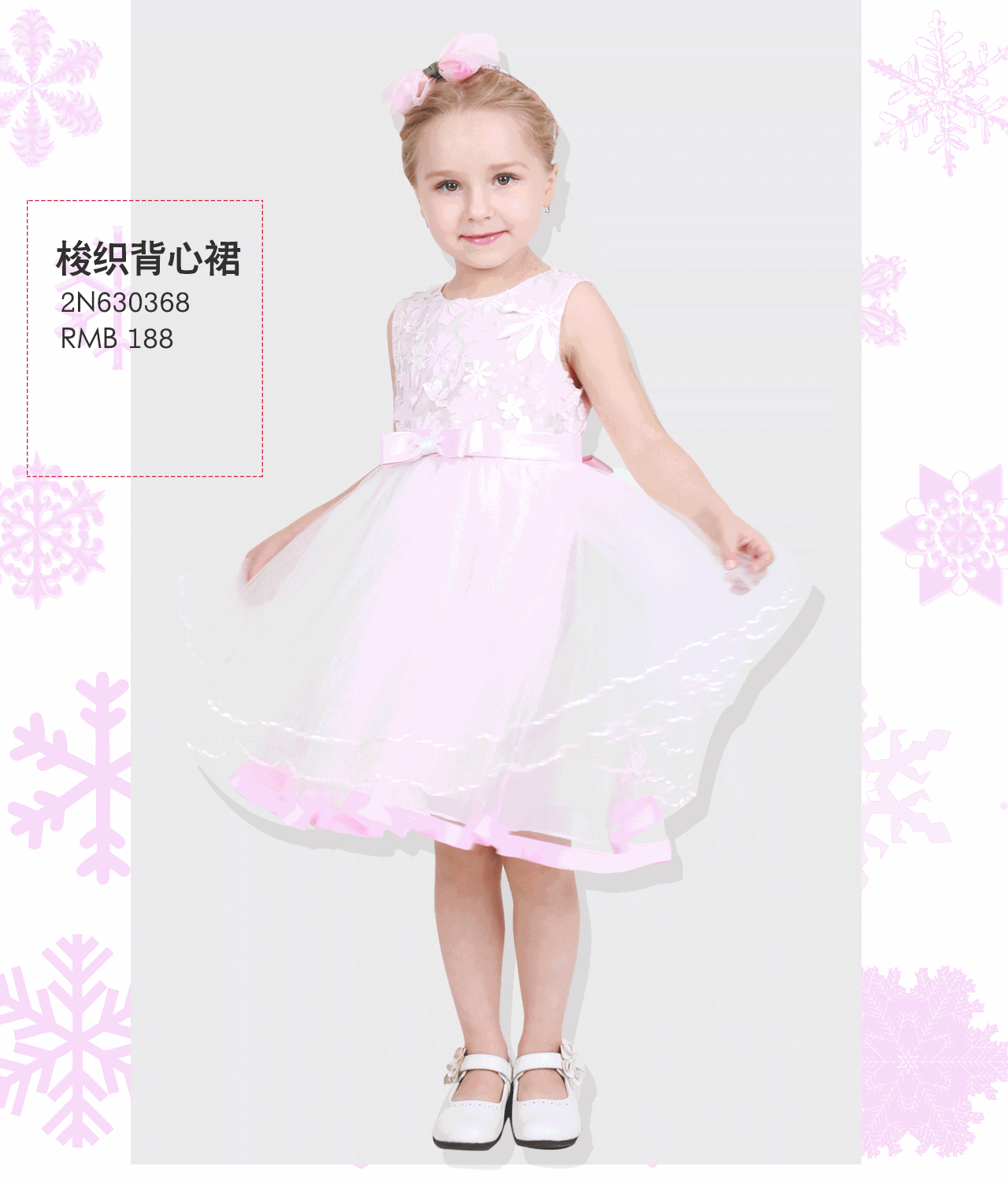 梭织背心裙, 配以浅蓝色的打底裤,一种清新,粉粉嫩嫩,协调的,简洁的妆扮成为大人们眼中的小公主!