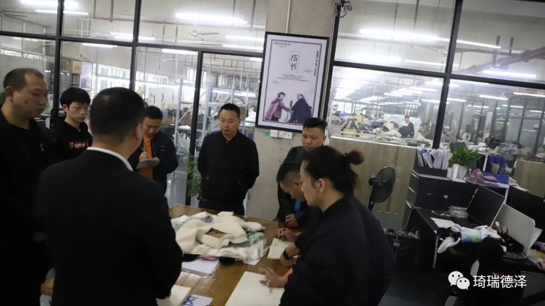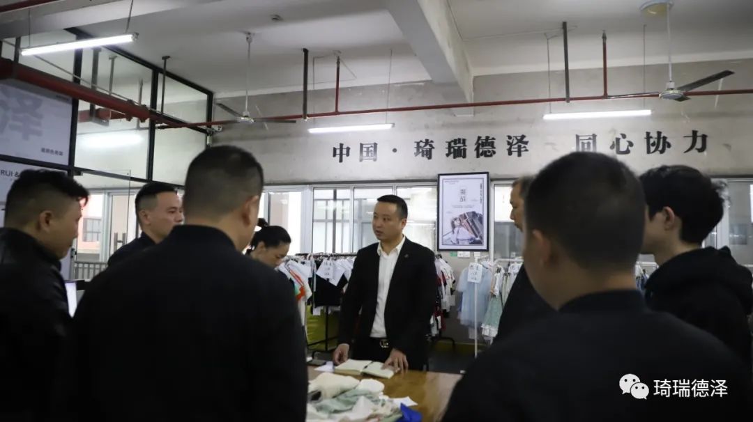 本次早会采购部、研发部、裁床部等多个部进行联合联动,大家统一思想,确定了初步执行方案,也希望大家能在工作中积极提出优化建议,坚持执行贯彻下去。中国·琦瑞德泽以生产质量作为企业的核心,从细微处开始抓起,从采购到设计、从设计到生产,环环相扣,每个环节都将进行严格的把控!