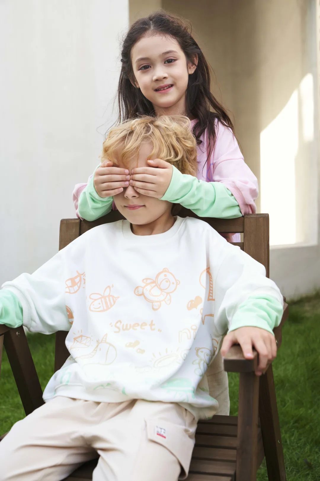 卫衣柔软舒适,保暖抗风,在十月份的深秋季节,不仅能抵御逐渐变冷的天气,还能轻松应对宝贝们蹦蹦跳跳的折腾,再也没有比卫衣更合适不过的搭配了。