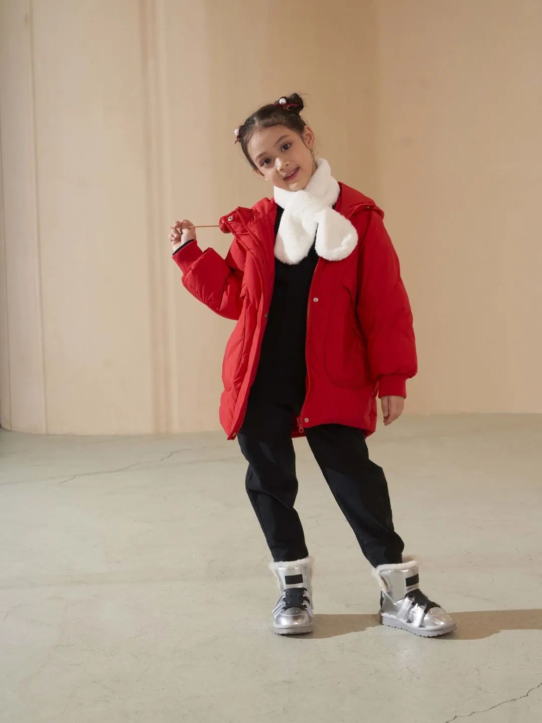 中长款红色羽绒面包服,妥妥的热情阳光风,美观可爱的大口袋,就像哆啦A梦的百宝箱一样实用。再搭配上白绒绒的围巾,如同云朵般轻盈,温暖无负担。