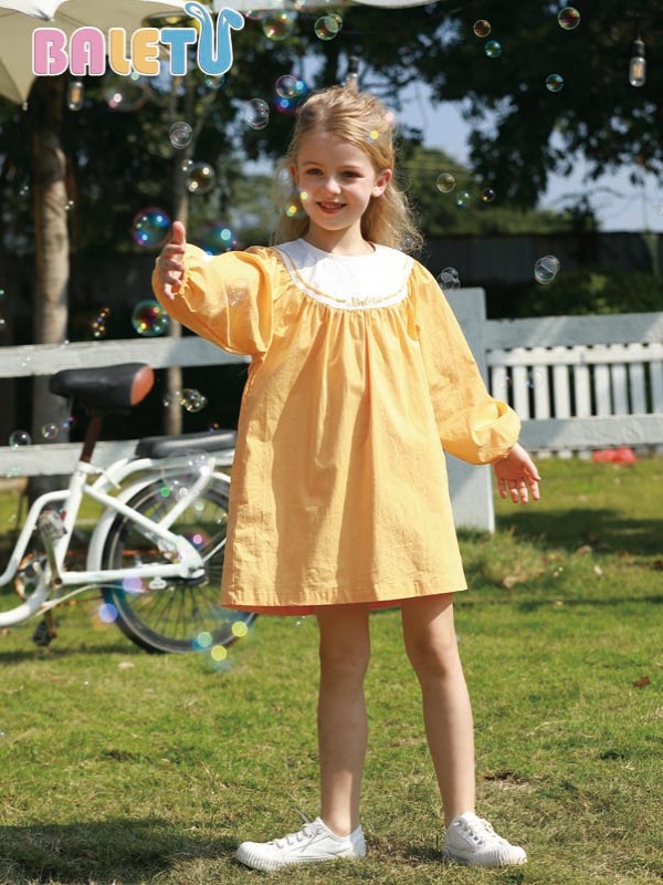 今年春天好像十分流行黄色,黄色让人看上去更加朝气蓬勃,这件黄色连衣裙可爱具有活力,圆领设计更加舒适,泡泡袖更能展现孩子的甜美,宽松的版型更加舒适,在春天穿最合适不过了,是春季的必备单品哦!