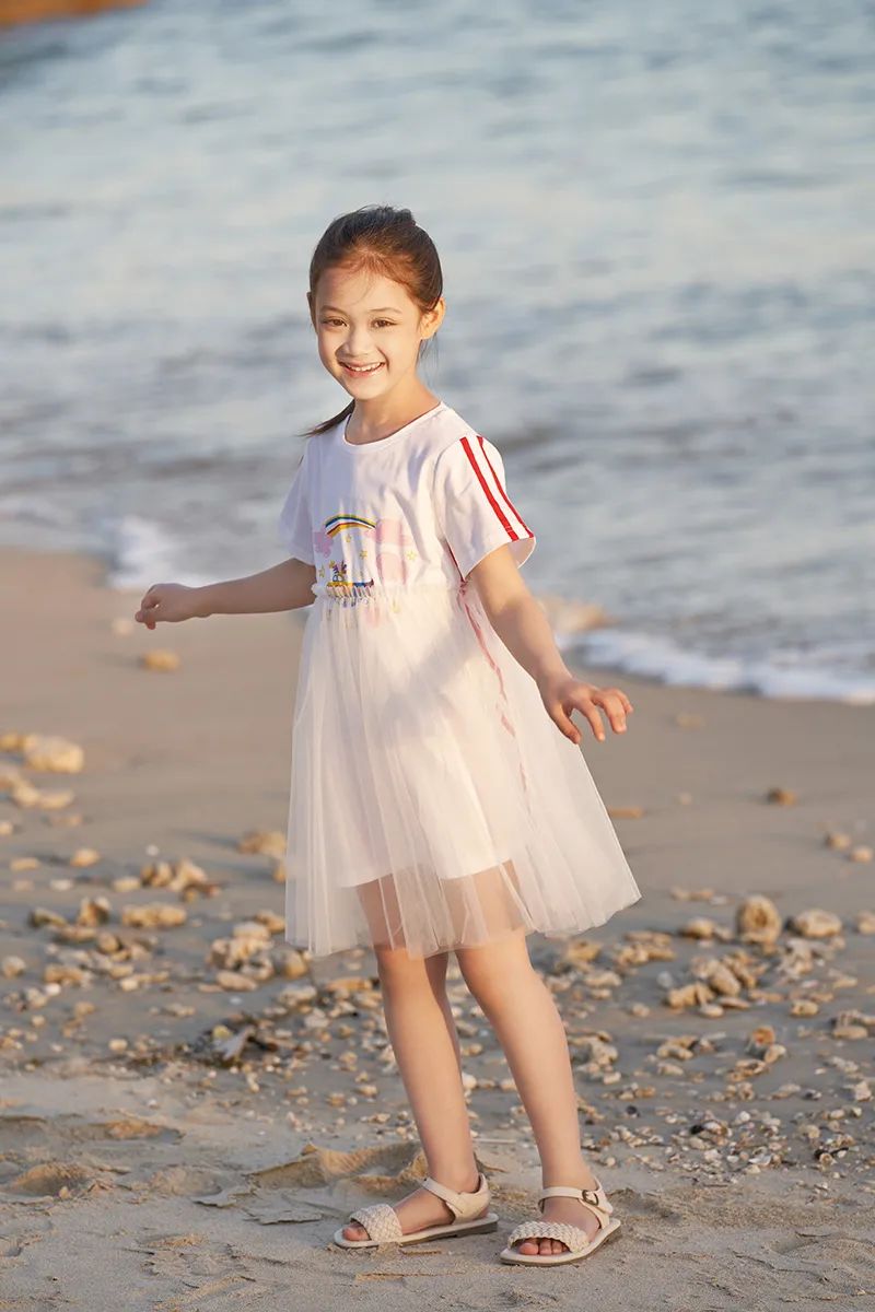 网纱裙看上去是分割开的冲突搭配,其实与短袖本为一件,在营造层次感的同时赋予孩子***个性。