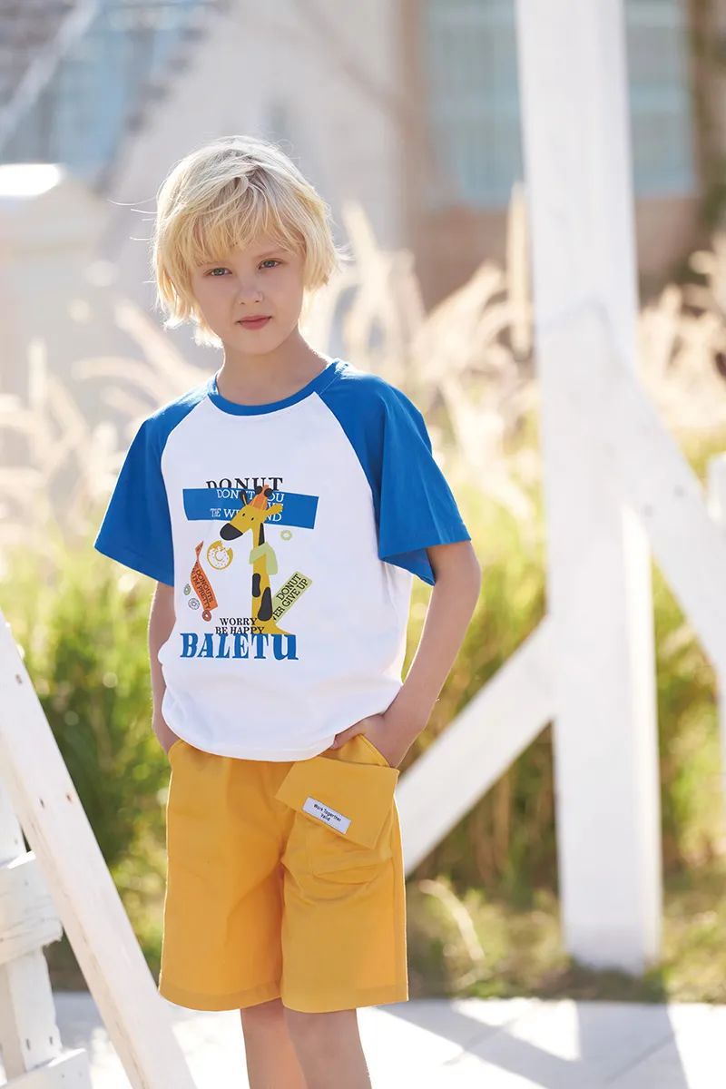 纯棉白色短袖,卡通图案让孩子爱不释手,极简线条勾勒出孩子的青春与活力。