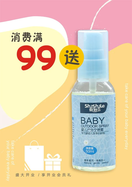 加入会员买即送蚊叮消1支,夏季蚊虫多,不一心被叮到,起包包又痒痒,用蚊叮消抹一抹,清凉又舒服,很快痒痒不见啦,大包包也消失了,好用!消费满99元送户外宁喷露1支,防蚊驱蚊,专为婴儿和孕妇研制,好产品,买它买它就买它。