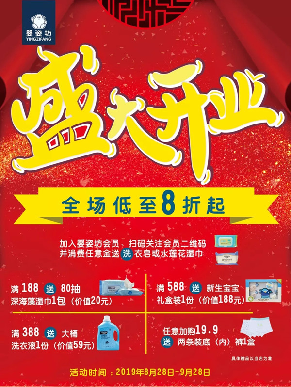 福利2:扫描关注加入婴姿坊会员,消费任意金额送洗衣皂、湿纸巾。