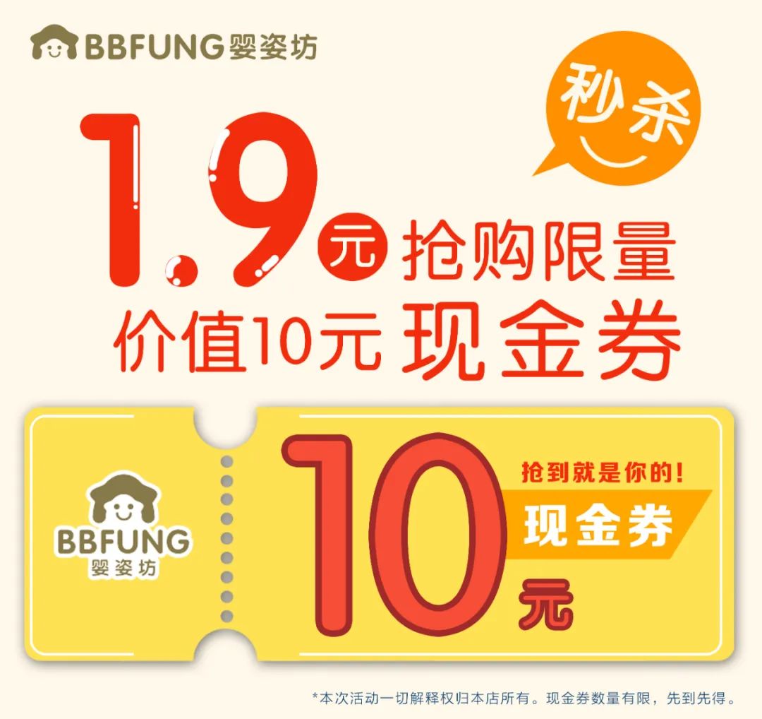2. #1.9元抢10元代金券# 1.9元当10元使用,先到先得,数量有限!即日起至 12月10日 扫码用1.9元抢10元代金券~