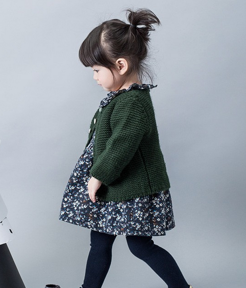 碎花连衣裙搭配,碎花的款式是今年比较流行的元素,可以深色也可以亮色,可爱的蓬蓬裙版型,还有花朵领子的点缀可爱十足,配上一件墨绿色针织开衫,墨绿色的针织开衫配上深色可以,亮色也可以,小女孩的俏皮穿搭,你也来学习看看吧。