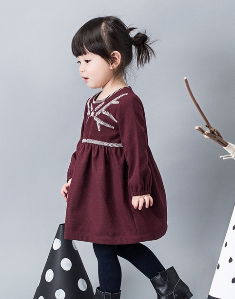 如果是纯棉的连衣裙款式,娃娃裙的版型可以搭配短款牛仔外套或是皮衣,小朋友穿皮衣效果也很不错哦,优果贝贝童装酒红色连衣裙款式,蓬蓬的裙摆显得比较可爱一些,下身深蓝色的打底袜配搭,短靴的配搭更潮一点哦,小朋友的装扮都很好看,那不都是妈妈们品牌选的好。