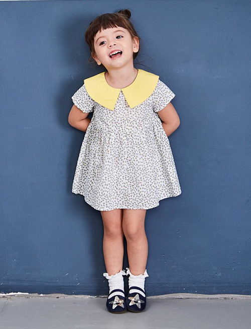 纯粹波点的变形款,波点式碎花裙也是不错的选择。田园风十足的碎花元素饱满有活力,搭配黄色领口,欢快活泼,充满童真乐趣。优果贝贝童装还有更多时尚单品,欢迎来店选购。