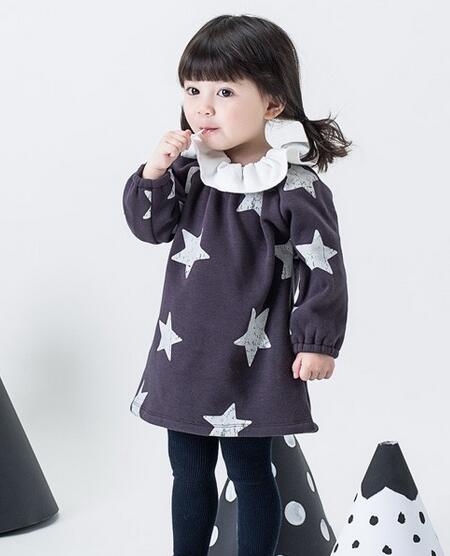 小朋友的装扮当然是要以舒适为主,纯棉的面料肯定不容错过,优果贝贝童装冬装打底连衣裙款式,纯棉的面料还有毛绒的点缀非常的舒适,整条连衣裙也有星星的图案点缀,下身一条灰色的打底裤,简单随意的舒适穿搭,让孩子时尚又可爱。