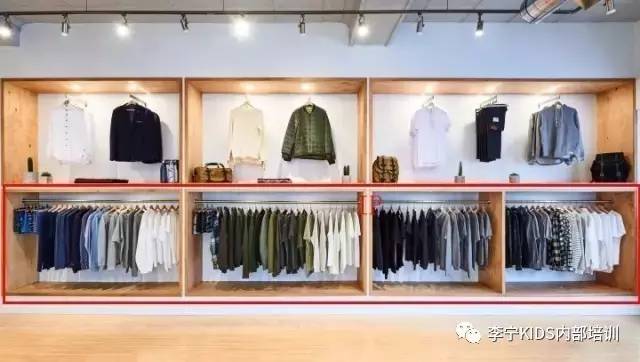 侧挂陈列基本上是每一家服装店都会使用的陈列方法,属于IP范畴,它是将衣服呈侧面挂在货架上的一种陈列形式。