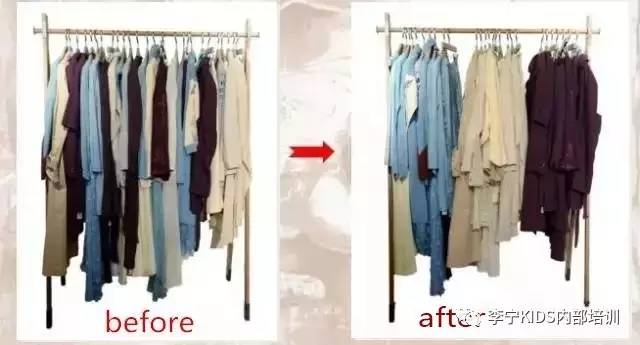 将衣服以色彩区分,有规律地挂在一起。这也是共和君逛街时候最喜欢玩的游戏,每次看到色彩排得不舒服的侧挂就容易手贱。