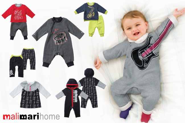 本季malimarihome的PROTO概念系列中,“摇滚巨星”系列活力四射、个性十足,致力于培养宝宝的音乐素养!设计师玩转电吉他、萨克斯、电子琴等摇滚乐器,在潜移默化中让宝宝接触到音乐的世界。穿着这一组酷酷的服装,每个宝宝都能成为台上发光发热的摇滚之星。