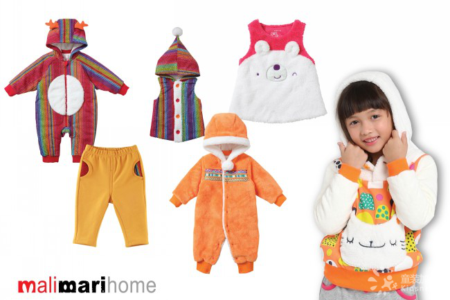 过一个喜气洋洋的冬季,衣服的颜色也格外重要,饱和度较高的色彩可以营造愉快的氛围,点亮整个冬季!malimarihome 为宝宝设计的“雪地嘉年华”系列,就是通过鲜艳明亮的颜色、活泼萌趣的卡通造型,为宝宝的寒冬升温!有型之余,连帽夹棉的设计,也时刻为宝宝保暖御寒!