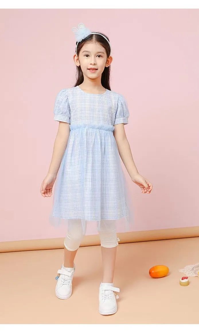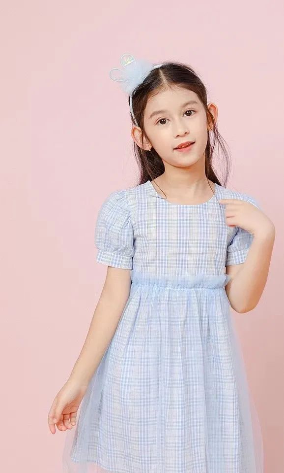 纯棉时尚泡泡袖条纹网纱裙,减龄公主裙,蓝色是夏天的颜色。