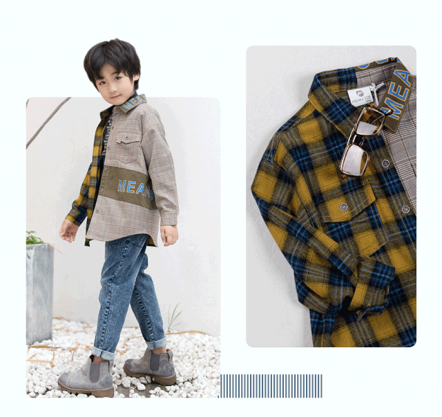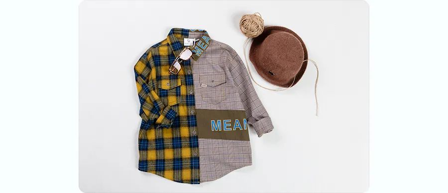 撞色格子衬衫则完美的融合了所有的这些元素,左边是