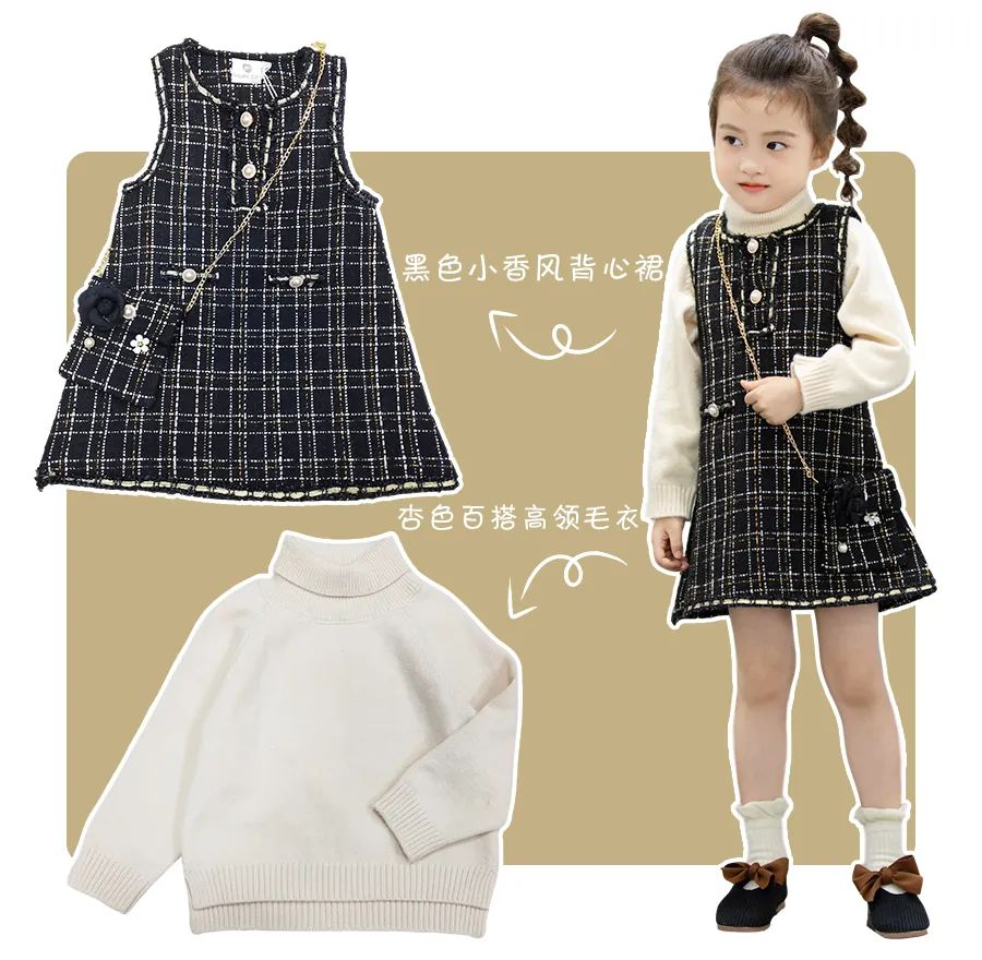 搭配三:黑色小雪风背心裙*百得杏鱼高领毛衣