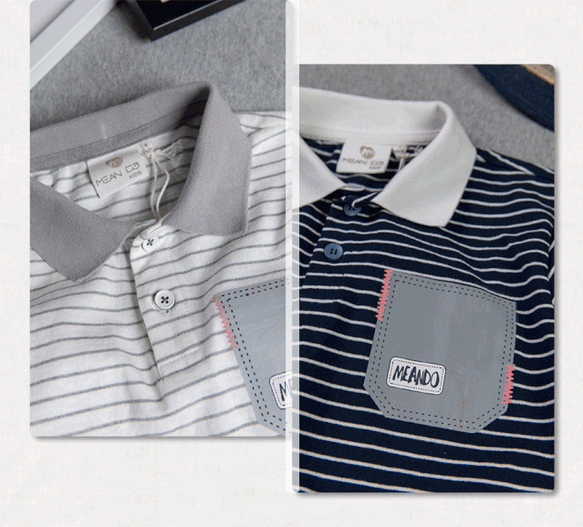 在经典的条纹设计基础上,胸前用印花做了一个假口袋