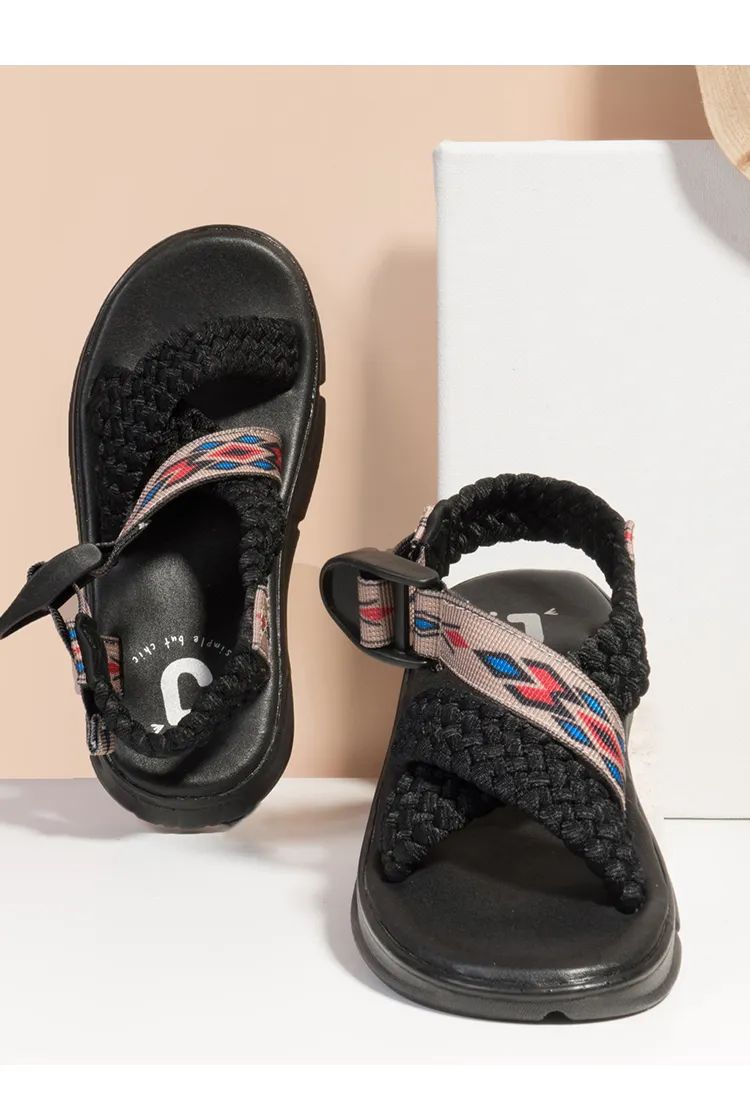 民族风编织凉鞋