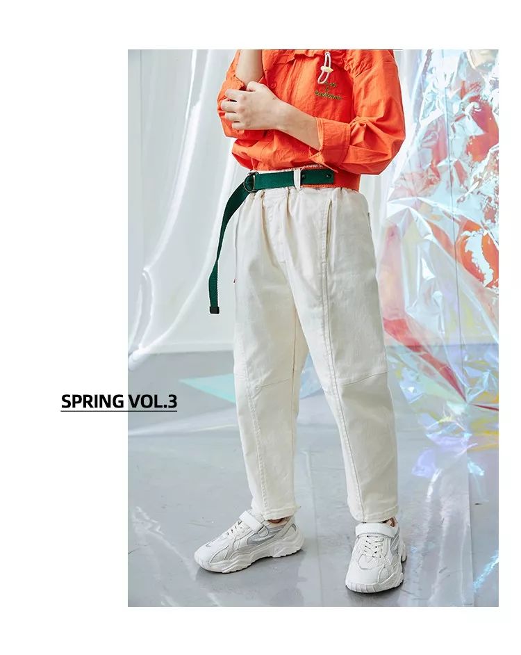 这款米色束脚牛仔裤,这款布料不是普通的棉麻布料,