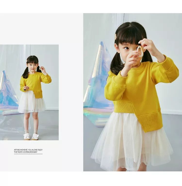 妹妹装花样十足的假两件连衣纱裙拼接设计,