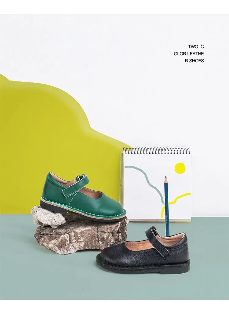 圆润鞋头,穿着舒适,呵护脚趾,便捷搭带设计,方便穿脱,凹槽防滑鞋底,有趣可爱,防磨防滑,特有的固特异沿条缝鞋机制作的外翻车线,将鞋面与鞋底用车缝线缝制在一起,更牢固耐穿;外翻的一圈使得整体轮廓更立体有型,材质是牛皮革,更加的耐穿防磨哦