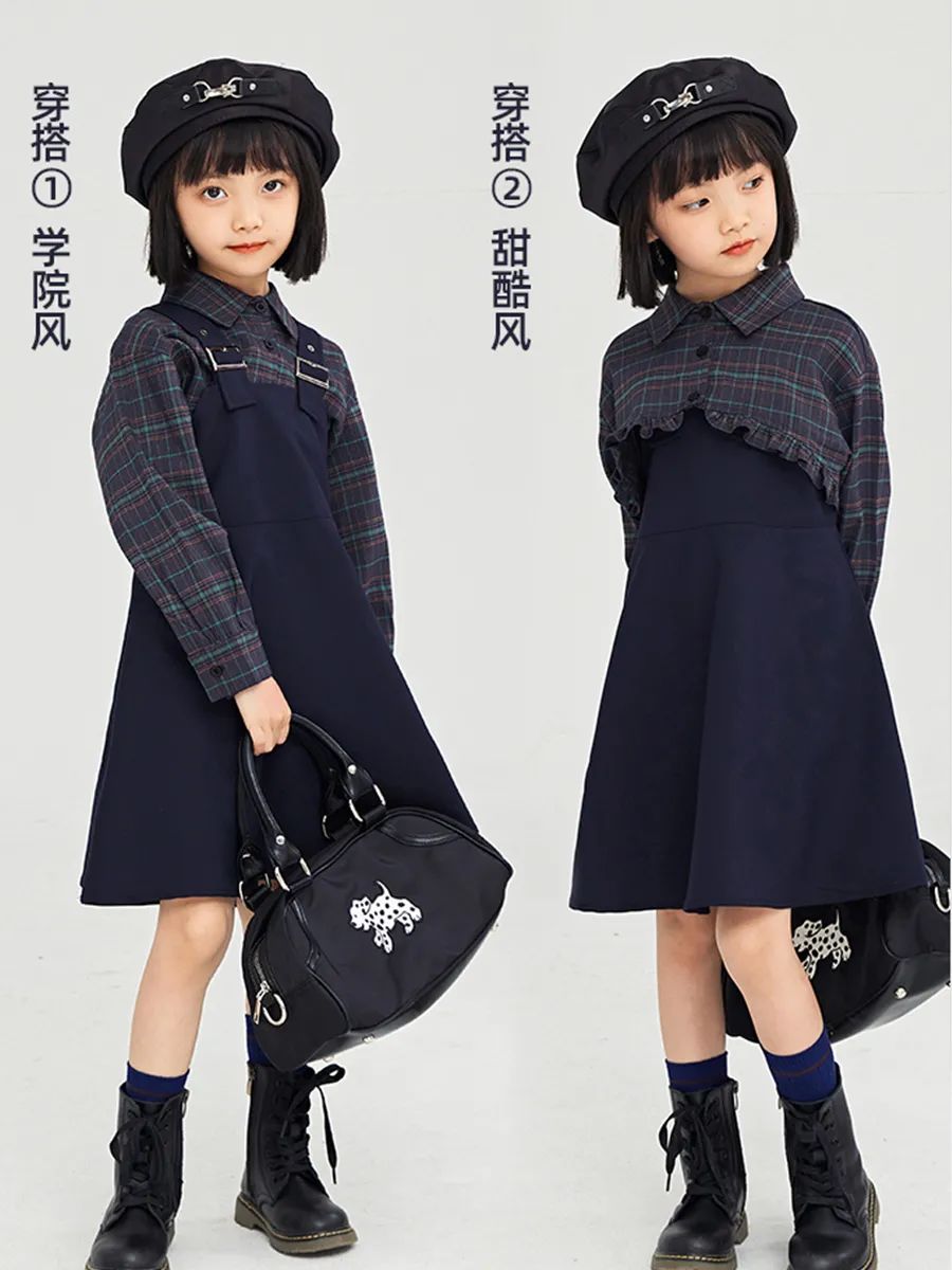截短式的格纹衬衫+背带裙的搭配look,鬼马少女人设立住咯~参考模特图两种穿法,风格也可以任意切换组合哦~
