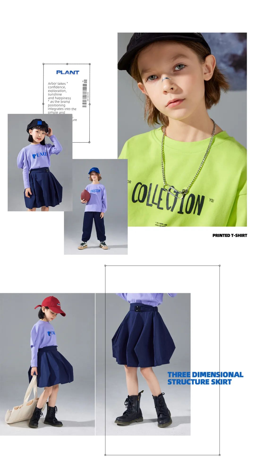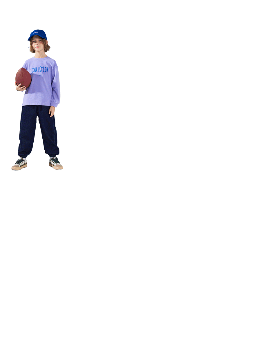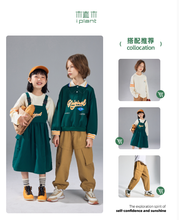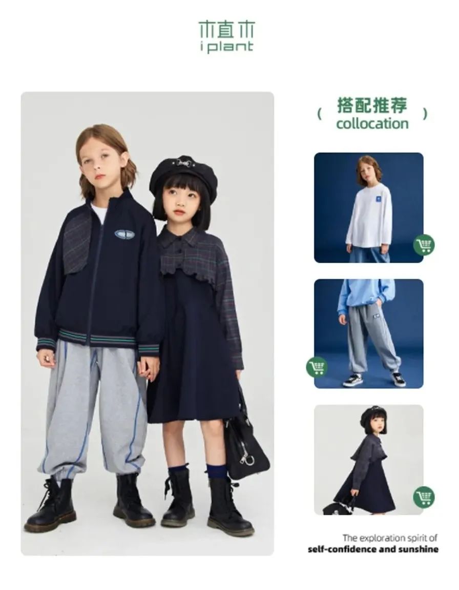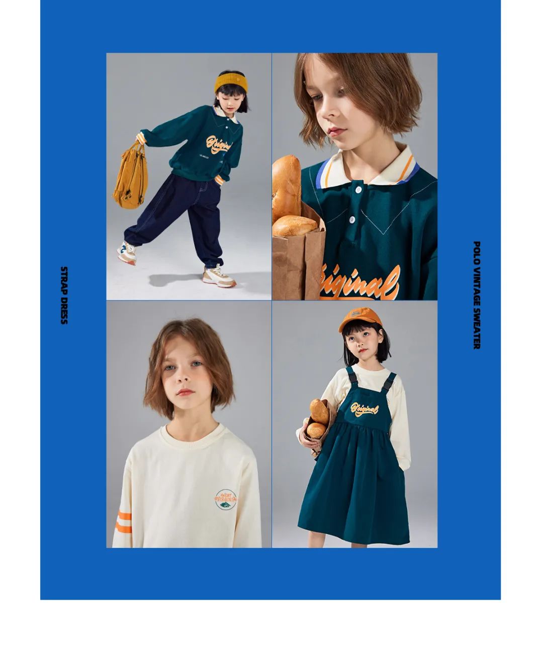 学院感的卫衣,复古的底色用亮色字母和线条描摹出轮廓来,同时也是点睛之笔。与之相匹配的女童款式——背带裙,可调节肩带,腰线拔高,视觉上显高不少哦,甜系萌妹移不开目光!