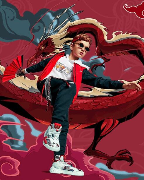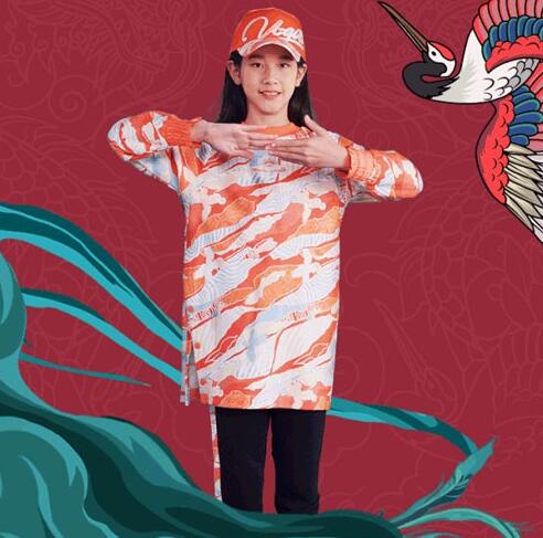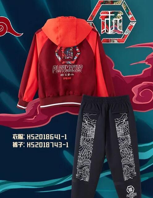 中国元素:麒麟,鹤、鼠,祥云。巧妙搭配,呈现独特街头风格,六边形图标,寓意释放顽乐天性。束口工装裤,版型宽松动感十足,白色龙腾底纹,时尚古典完美结合,裤脚“顽”字印记,展现少年潮酷个性。