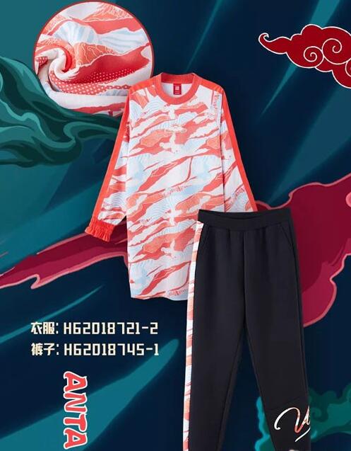 侧边开叉设计,创新引领2020潮IN版型,祥云,仙鹤图案点缀,古韵盎然,寓意为新年祈福。黑色配色尽显少女修长身形侧标ANTA GIRL独立印花,打破单调,体现设计精致细腻。