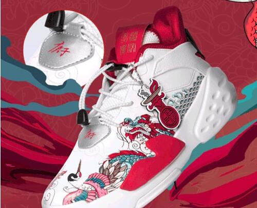 纯白大底搭配亮眼春节红,鞋头“庚子”迎接鼠年当头鸿运,精美麒麟仙鹤图案,在鞋面腾云驾雾,演绎中国独特「霸道」潮流。