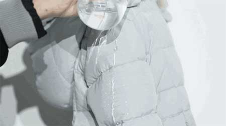 白鸭绒展示:2018冬季羽绒采用高密度纳米科技面料处理,防水、防油污。