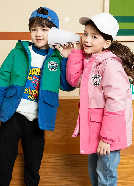 珠光亮PU面料柔软细腻,无惧小雨防水泼,色彩时尚绚丽。超柔短绒领布温和亲肤,简约下摆穿着舒适休闲。袖子可拆卸,马甲可以秒变羽绒服,一衣两穿,方便又有童趣。
