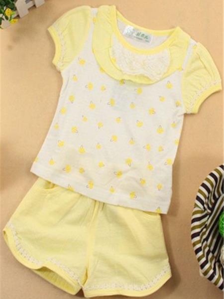 【语童果儿】2013夏女童装新款 雪纺虎头拼棉袖+哈伦中裤套装批发